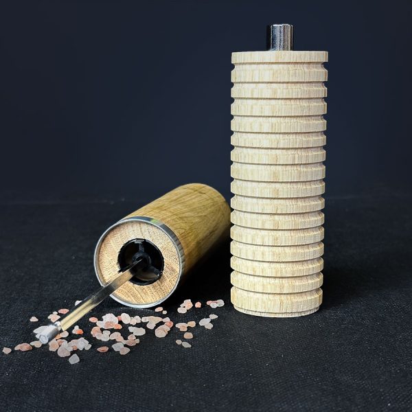 Elegantes Salz- und Pfeffermühlen Set aus FSC-zertifiziertem Eichenholz als stilvoller Küchenhelfer und individuelle Geschenkidee